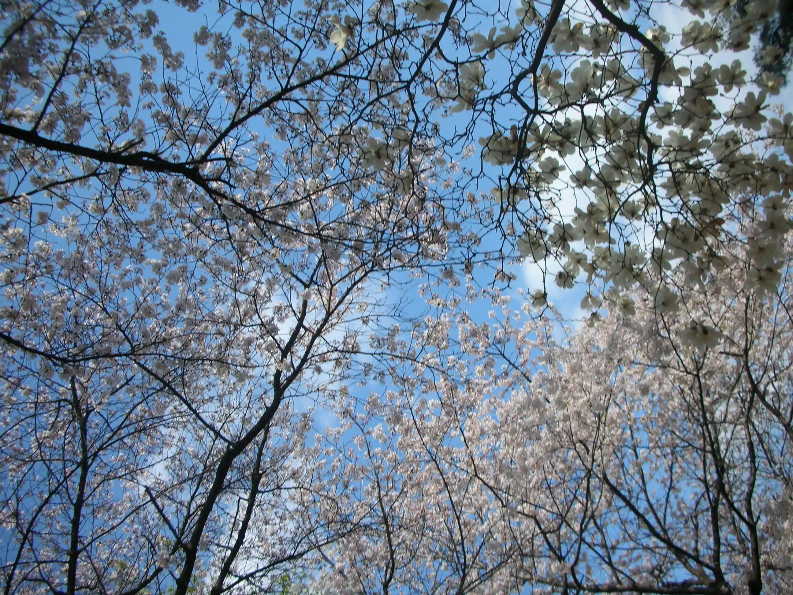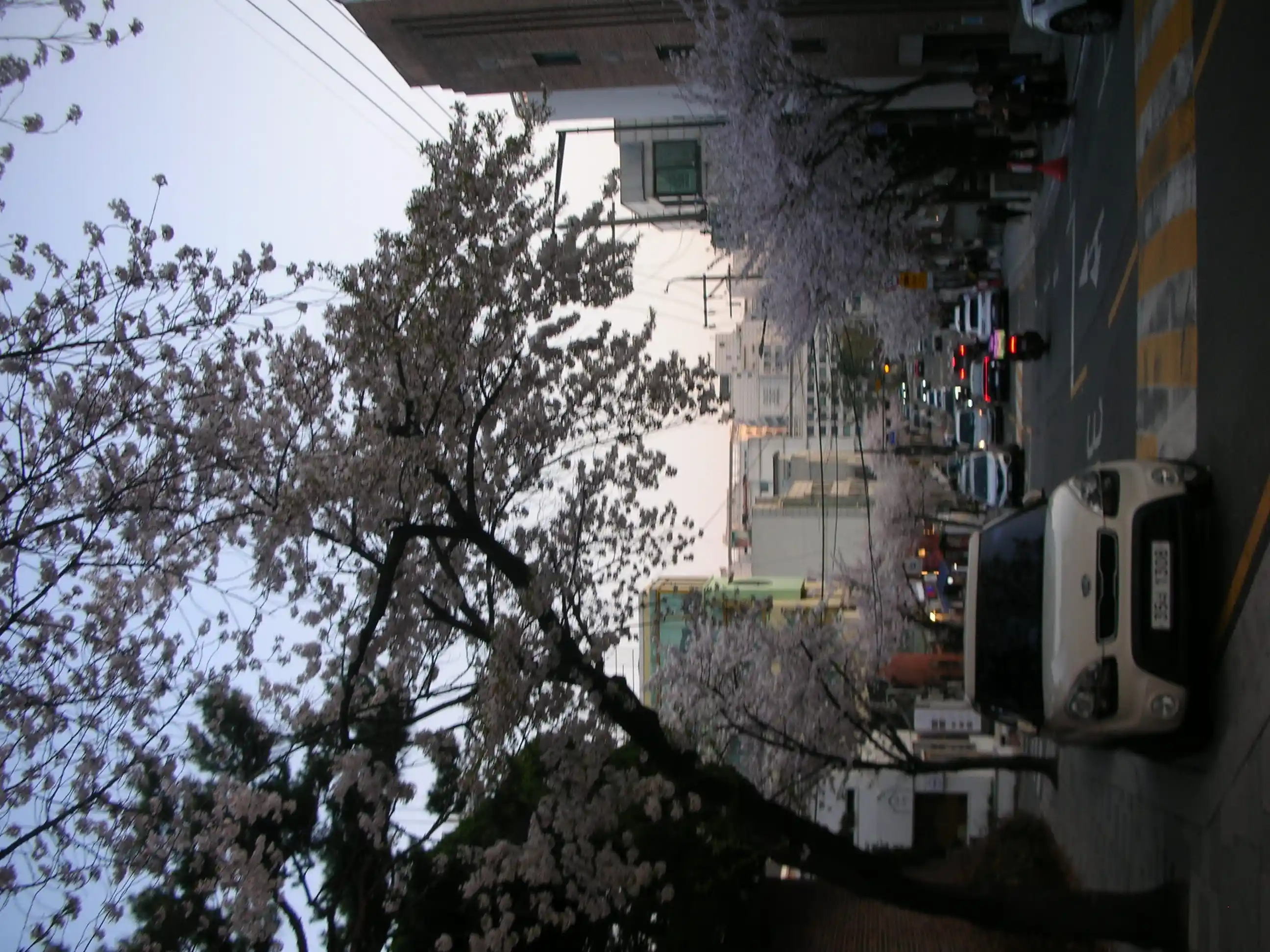 Es ist gerade Kirschblüten-Zeit und deshalb sind überall in der Stadt es wunderschöne rosa Flecken verteilt.
