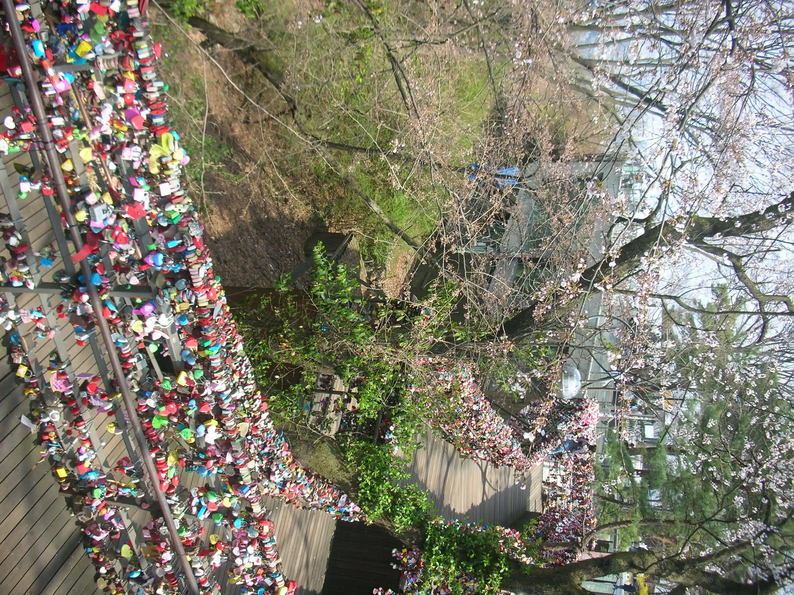 Bevor ich schlechte Laune bekommen habe sind wir noch an den Geländern mit den Herzschlössern langgelaufen — so wie in Paris eben.