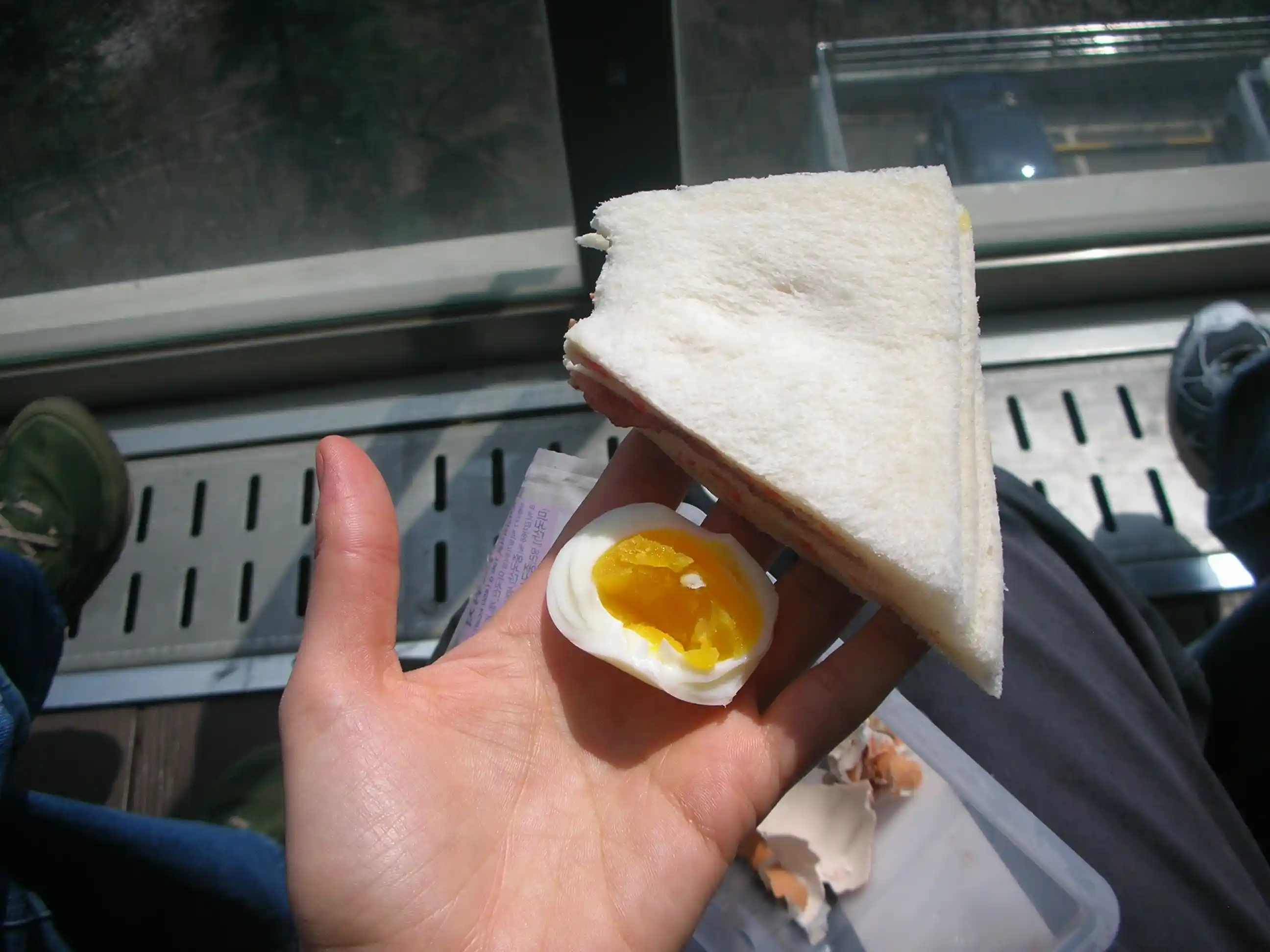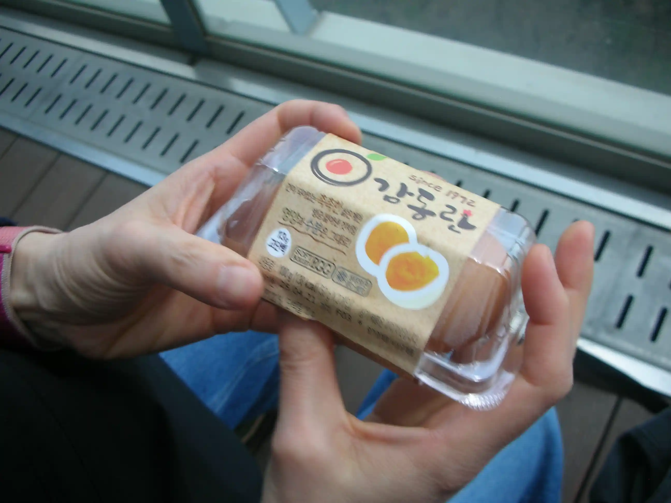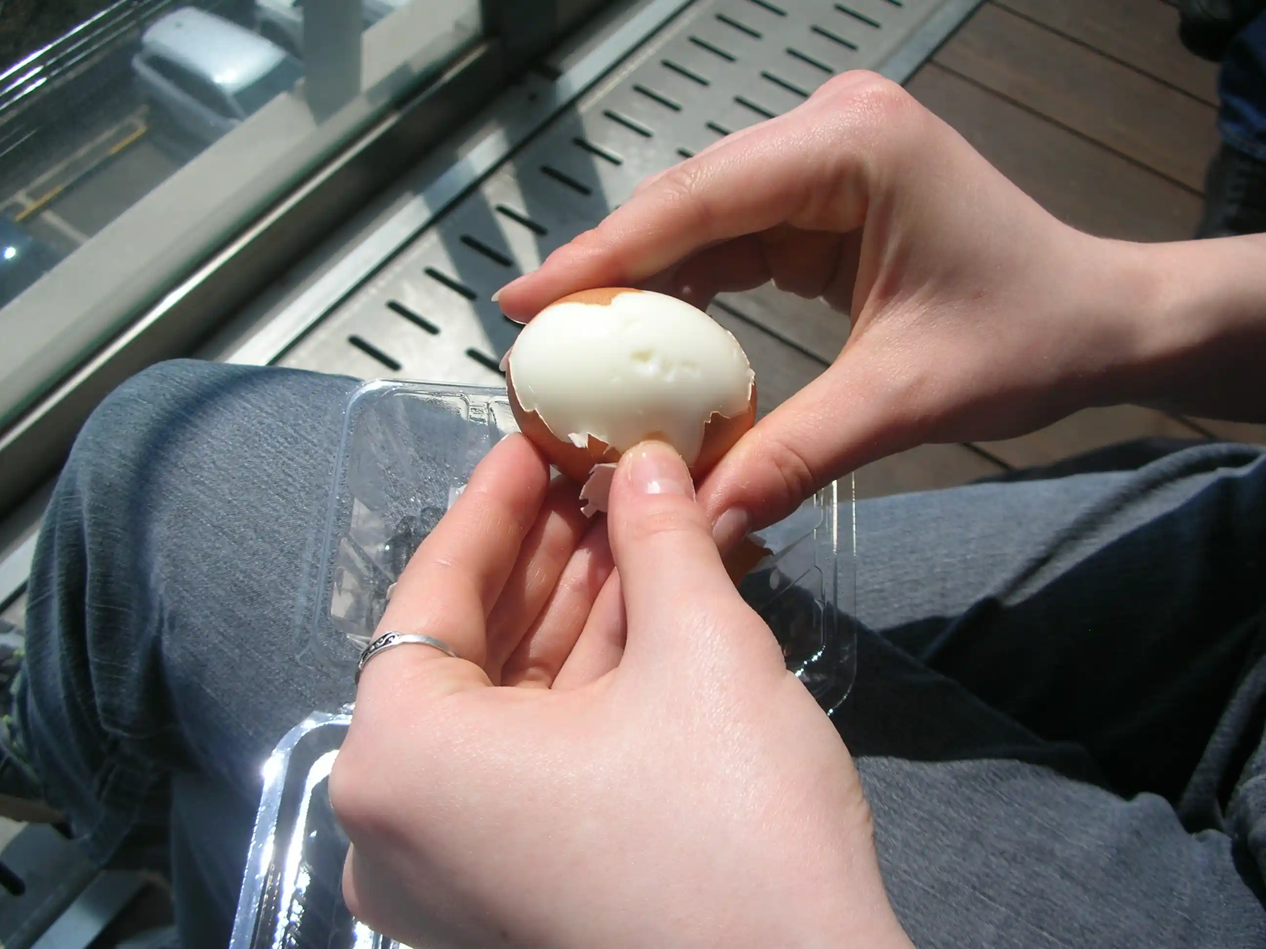 Die Eier waren wunderschön Orange in der Mitte und sehr lecker. In Deutschland würde ich lieber aus dem Fenster springen als ein gekochtes Ei aus einer Verpackung zu essen, aber hier geht das.